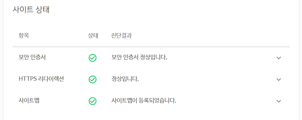 그러다가 3달째 되던 날, 메인블로그의 네이버유입이 안정적이 되어 어떤 키워드로 유입되는 지 확인할 겸 네이버 서치어드바이저에 들어갔다가 여전히 확인중이겠지, 하면서 하위블로그를 클릭해보니 어?!!! 보안인증서가 정상입니다로 바뀌어있다!!!