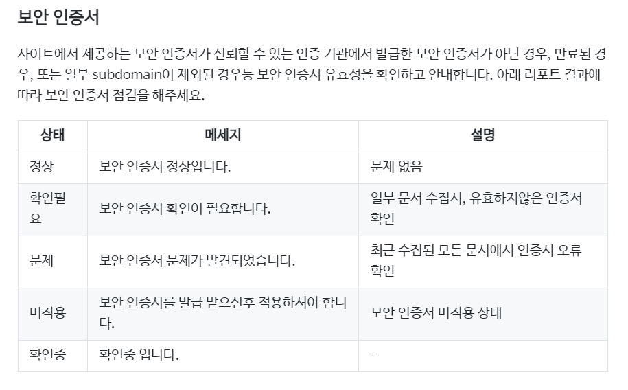 하위블로그를 만들고 네이버 서치어드바이저에 등록한지 3달이 다 되어간다. 메인 도메인은 등록하고 3일만에 보안인증서가 확인됨으로 바뀌었는데 하위블로그는 등록한지 2달이 다 되어도 여전히 보안인증서를 확인하는 중이라고만 나와 있어 문제를 해결해보려고 나름 애를 써봤다.
