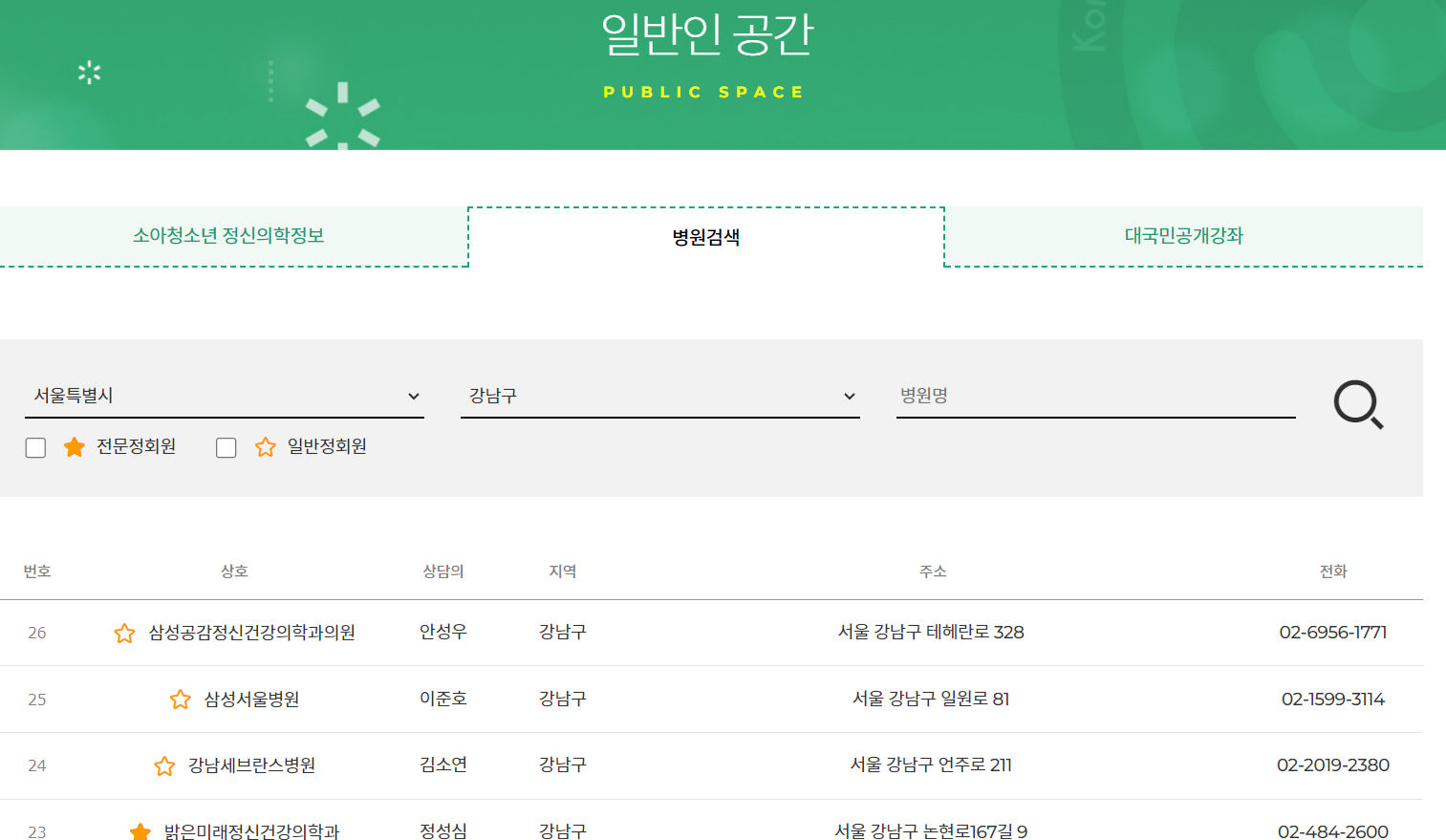 사이트의 일반인공간->병원검색을 활용하면 본인 지역을 기반으로 한 진단을 받을 만한 병원을 쉽게 찾을 수 있고 연락처 및 위치, 전문정회원 및 일반정회원 여부를 한 눈에 확인할 수 있으므로 검색해보자.