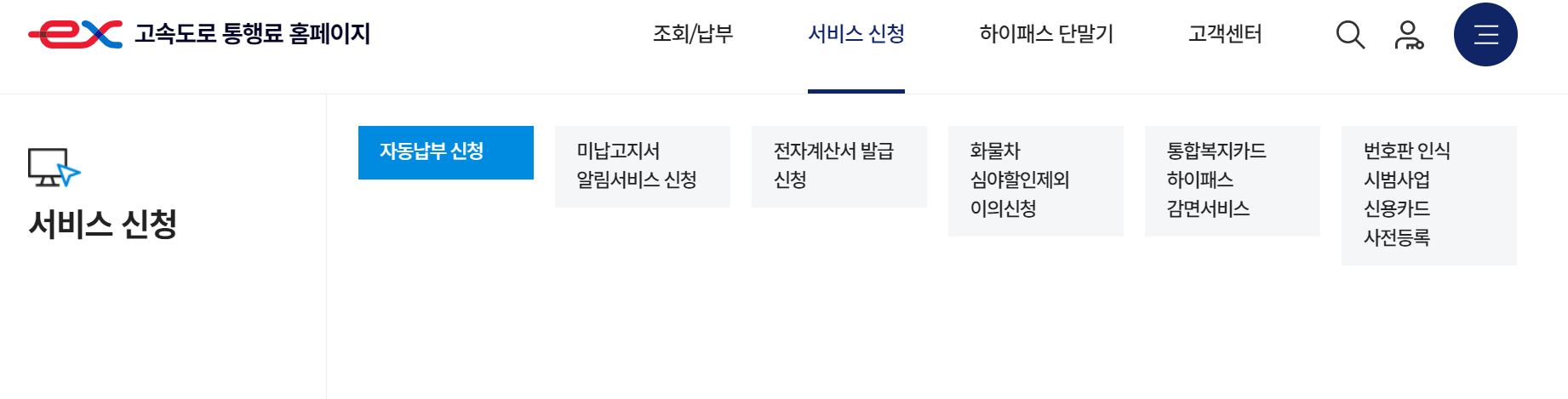 고속도로 통행료 하이패스 미납요금 자동납부 신청하는 방법 1. 참고사항