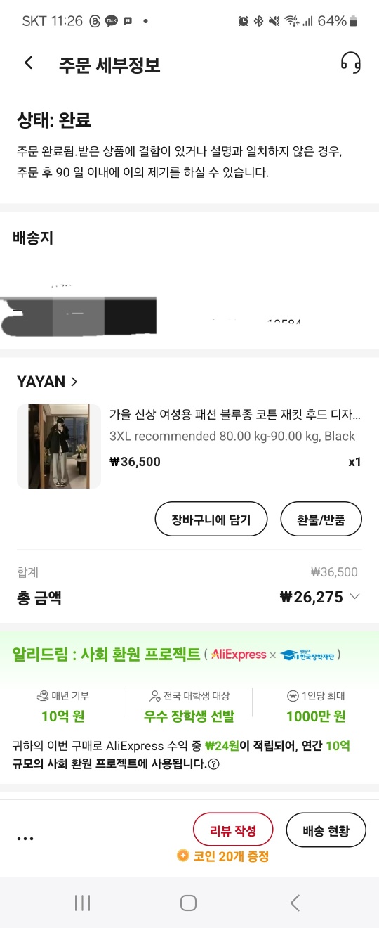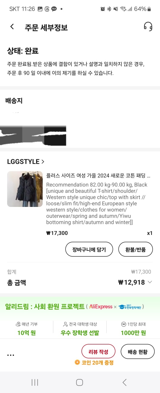 그래서 아우터만큼은 테무나 쉬인보다는 알리를 추천하고 싶다.