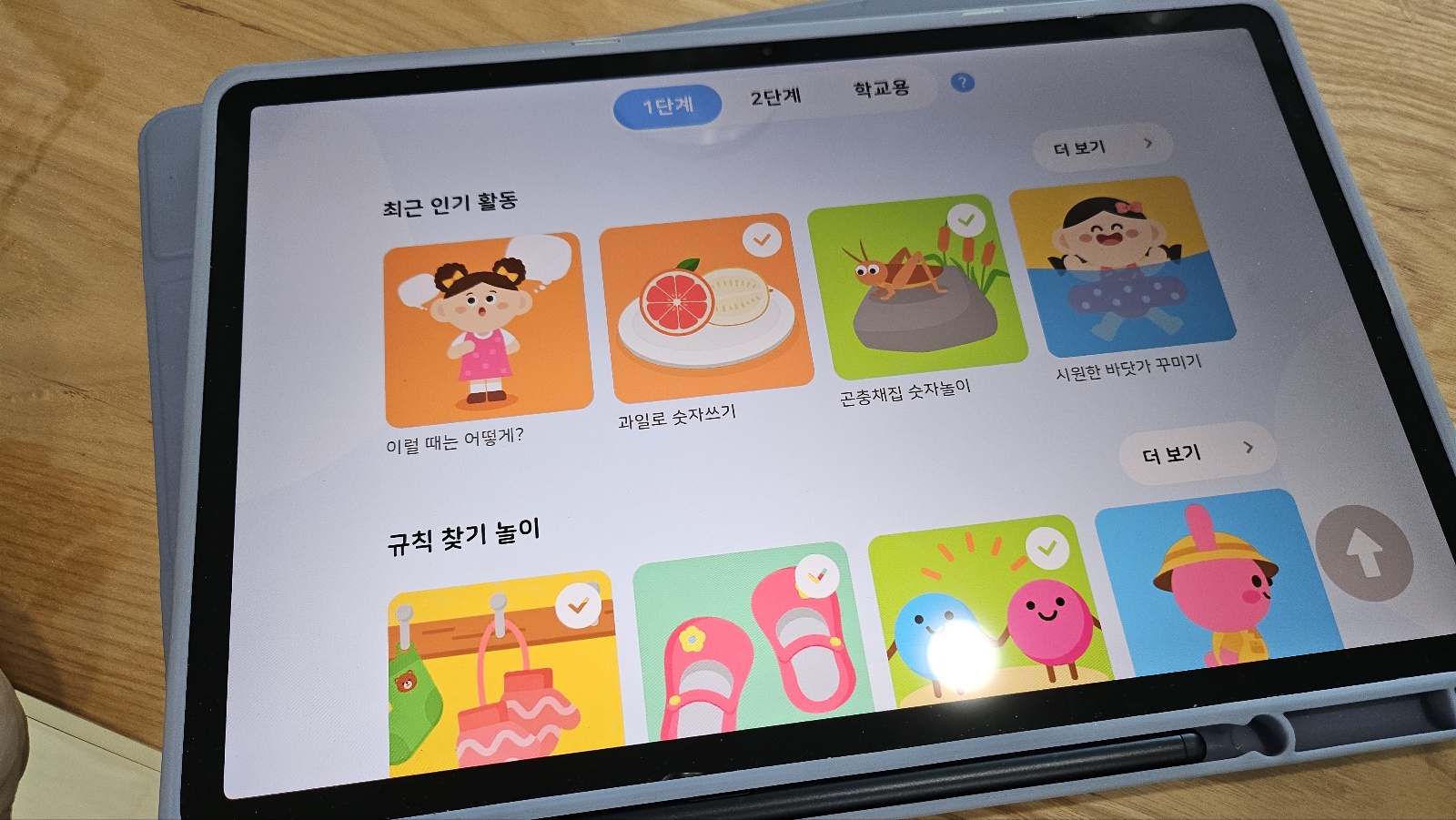 그 다음으로 좋은 부분은 직관적이어서 부모의 도움이 크게 필요 없다는 점이다. 누르거나 수업을 진행하는 동안 아이가 스스로 진행할 수 있을 정도의 난이도와 설명을 하기 때문에 5살짜리 둘째도 혼자 일일미션을 다 해낼 수 있는 정도의 수준이라 잘 안되는 것 한 두개를 제외하곤 큰 도움이 필요없다.