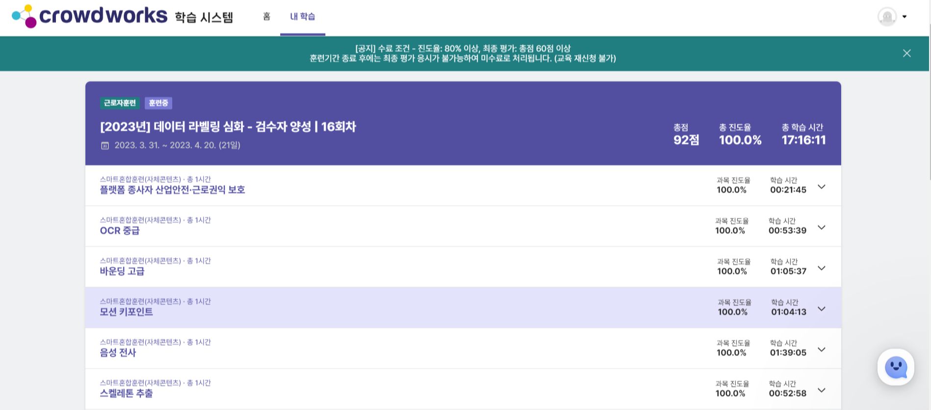 이렇게 총 16시간의 수업이