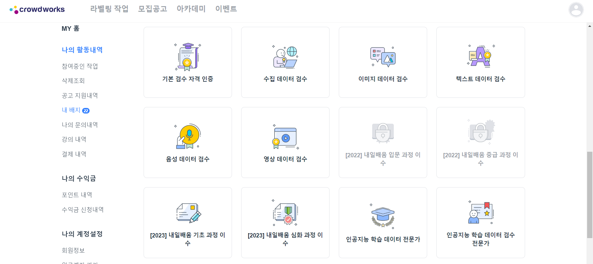 크라우드웍스의 배지시스템이 더 채워지기 때문이다.