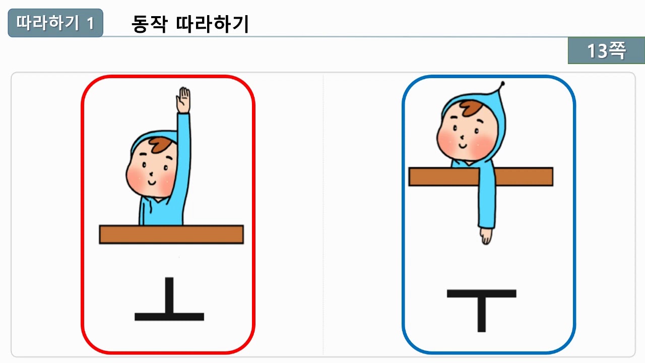 특히 모음을 배울 때 ㅏ, ㅓ, ㅡ , ㅣ등의 동작은 아이들이 즐겁게 따라하면서 모음을 동시에 익힐 수 있어서 한글에 거부감이 이미 생긴 아이들에게도 즐겁게 다시 한번 한글을 배울 수 있게 도와준다.