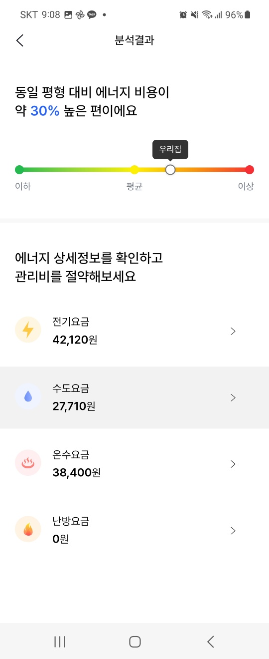 전기세나 가스료, 급탕비 등은 사용하는 만큼 내게 되어 있다. 우리집 같은 경우는 영유아 및 어린이가 2명있는 4인 가족이므로 더운물이나 전기, 가스를 많이 사용할 수 밖에 없어 많이 나오지만 1인 가구 혹은 2인 가구라면 사용하는 만큼만 나오니까 훨씬 덜 나올 것이다.