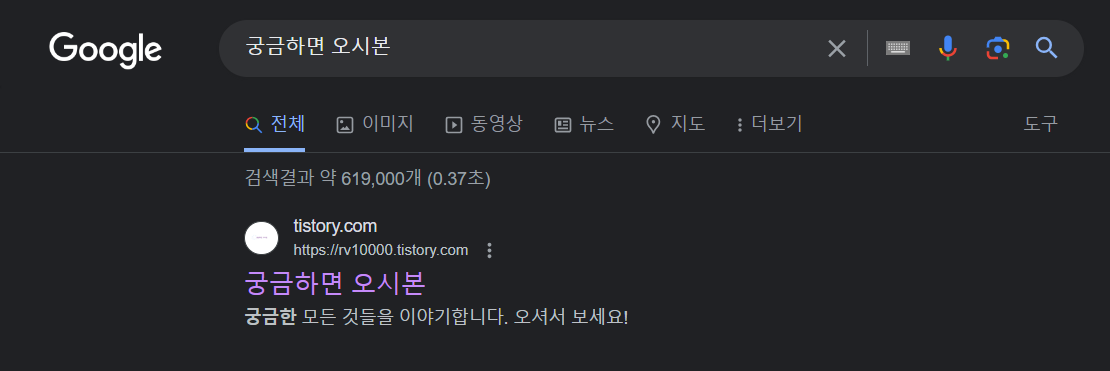 떡하니 내 블로그가 존재하는데도 없다고 말하는 야속한 다음과 달리 구글에서는 여전히 내 블로그가 검색된다.