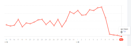 우상향하던 블로그가 저품질 맞자마자 주르륵 미끄러지는 모습