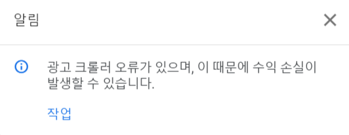 난생 처음 보는 알람인데다 수익 손실이라는 무시무시한 단어를 포함하고 있었기에 부랴부랴 확인을 해보았다. 혹시나 클릭수가 0인 이유가 이것인가 싶었기 때문이다.