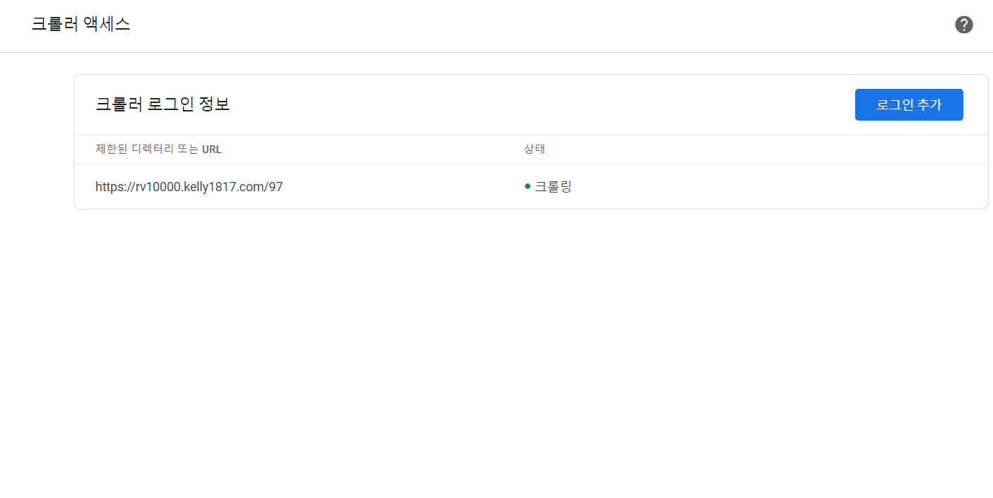 그러고도 여전히 크롤러 오류 알람은 계속 떠 있었는데 시간이 조금 지나자 크롤링 액세스 정보의 상태가 크롤링으로 바뀌었다.